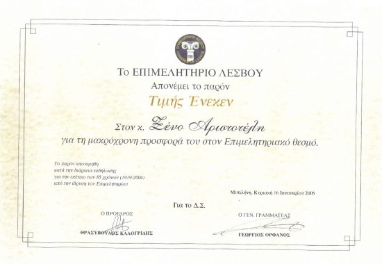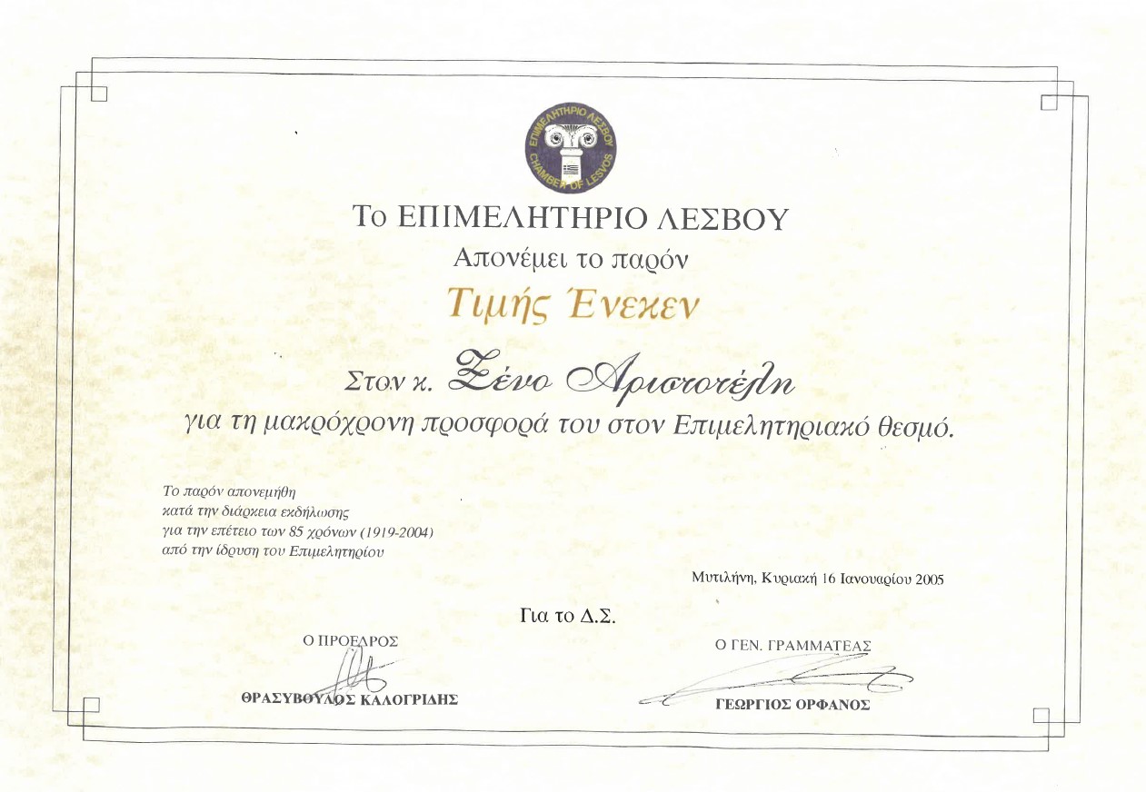 The areas that he was mostly used to buy oil were Thermi, Komi, Pigi, Baltziki and Loutra. He was working until he was 86 years, he also used to swim until he was old and he was among the last oil-agents that all remember when Ladadika was still an active market. He has left a very distinct footprint in the market of Ladadika. The Lesbian Chamber of Commerce has offered him a merit for his long-term contribution to the trade of olive oil.